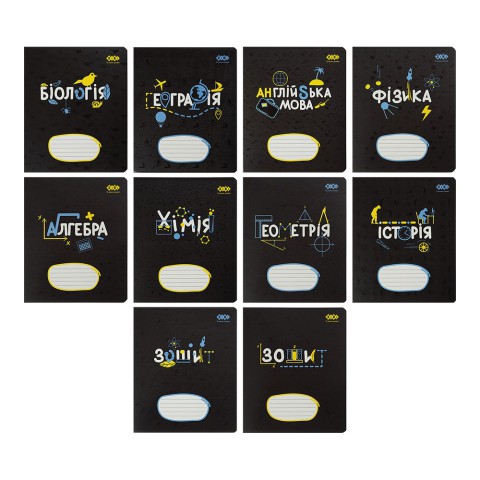 Зошити учнівські 36 аркушів клітинка KIDS LINE BLACK, 8 предметів, 10 шт. в упаковці