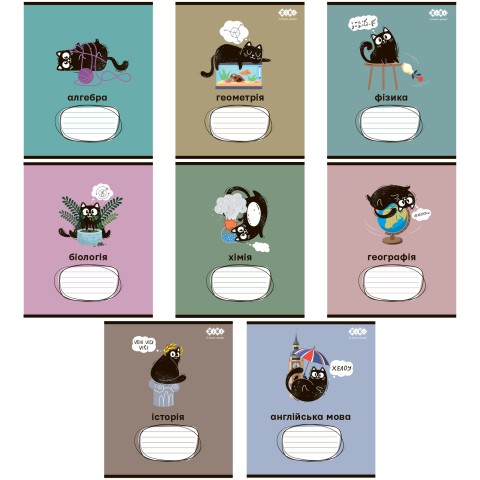 Зошити учнівські 48 аркушів клітинка CRAZY CAT, 8 предметів, 10 шт. в упаковці