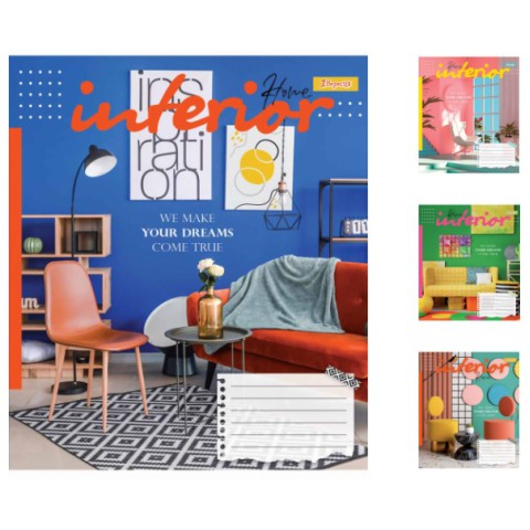 Зошити учнівські 60 аркушів клітинка 1В Interior, 10 шт. в упаковці – Шкільний аксесуар (60 аркушів, 1В) у клітинку з обкладинкою в стилі інтер’єрного дизайну. Щільність паперу 55 г/м², кріплення на скобу, кольоровий друк CMYK, ВД-лак. Упаковка містить 10 штук. Зручний для нотаток і креслень. Додає естетики. Замовляйте на Demsky.com.ua для стильного навчання!
