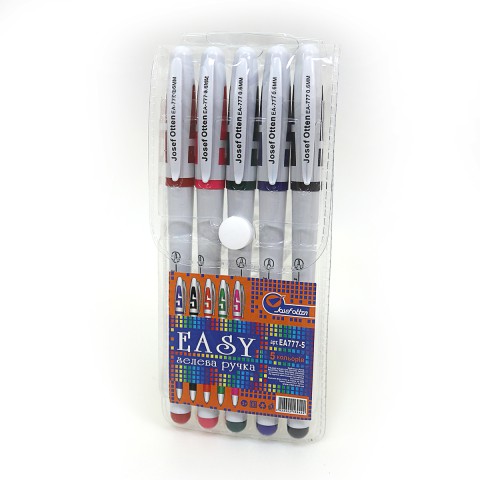 Набір кольорових гелевих ручок J.Otten, 5 шт. білий корпус, EA777-5