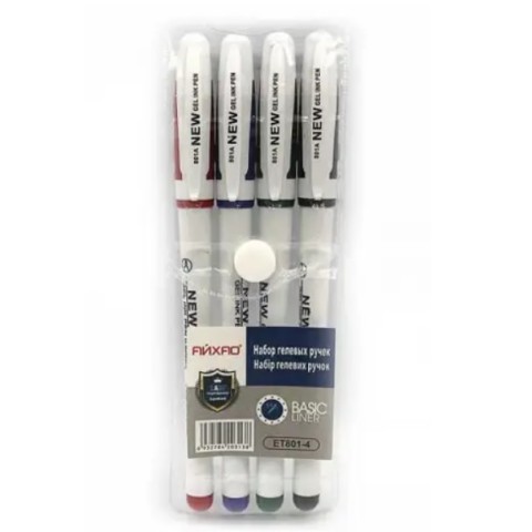 Набір гелевих ручок, 4 кольори, 0.5 мм, грип, Айхао (українською)