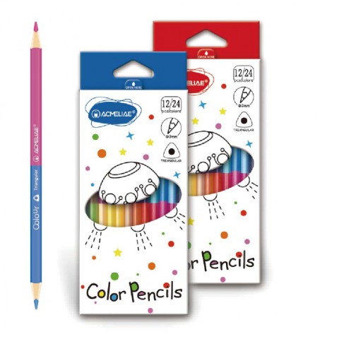 Олівці кольорові двосторонні Acmeliae, 24 кольори (12 шт.), трикутний корпус, 3 мм дозволяють малювати завдяки двостороннім олівцям. Включають 12 олівців (24 кольори) та інструкцію. Ідеально для дитячої творчості. Створюйте барвисті шедеври! Купуйте на Demsky.com.ua.