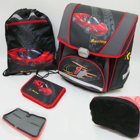 Набір: рюкзак-коробка, мішок для взуття, пенал плоский Racing, PREMIUM-F