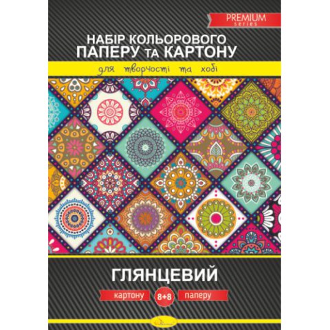Набір кольорового картону та паперу А4 (односторонній), 8+8 аркушів, глянсовий premium