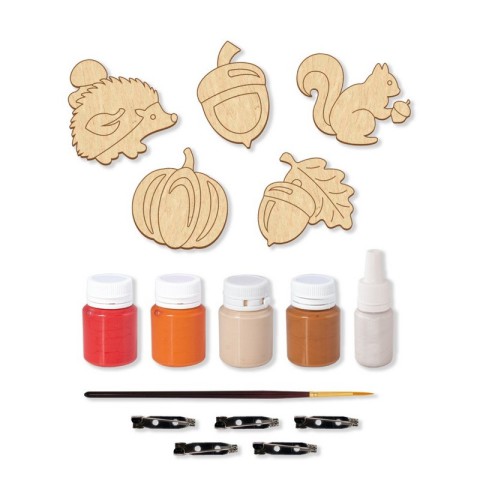 Додайте своєму образу теплі осінні акценти з набором для творчості "Осінні мотиви" від Fabrika Decoru! Цей комплект "все-в-одному" дозволить вам легко та із задоволенням створити п'ять унікальних дерев'яних значків-пінів. Вам не потрібно бути художником — просто дайте волю фантазії та розфарбуйте милі фігурки лісових мешканців. Готові значки стануть чудовою прикрасою для вашого одягу, сумки або душевним подарунком, зробленим з любов'ю.