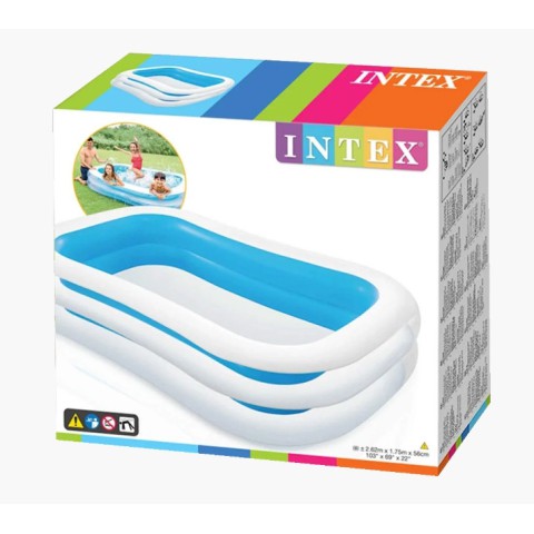 Просторий, універсальний басейн Intex 56483 Прямокутний розміром 262х175 см має високі, пружні бортики 56 см з матовою поверхнею і спеціальні зливні клапани. Виріб з високоякісного, ущільненого вінілу товщиною 0,30 мм, який після тривалого перебування на відкритому сонці не виділяє токсичних речовин і не викликає алергію. Конструкція відрізняється надійно проклеєними стратегічними швами і чудовою якістю виготовлення, завдяки чому басейн буде радувати Вас і Ваших малюків не один сезон поспіль. Модель з колекції Swim Center забезпечена ненадувним, міцним дном, двома автономними, повітряними камерами з комбо клапанами. Активні ігри у воді корисні для загального фізичного розвитку, поліпшення координації рухів, зміцнення опорно-рухового і вестибулярного апарату.