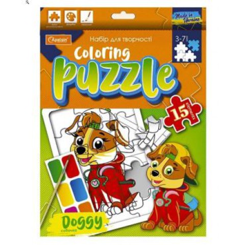 Набір для творчості, Пазл-розмальовка з фарбами, Собачка дозволяє створювати розфарбований пазл із собачкою. Включає пазл, фарби, пензлики та інструкцію. Ідеально для творчості. Створюйте милі шедеври! Купуйте на Demsky.com.ua.