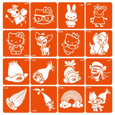 Набір трафаретів для біо-тату "Trolls + Kitti + Pepa" Trolls-kitti-pepa-16