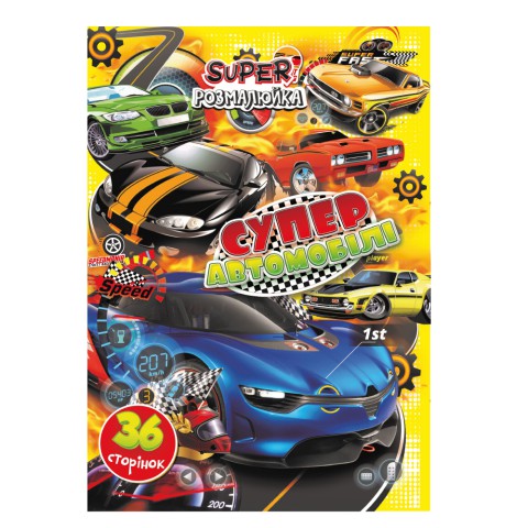 Розмальовка Супер розмалюйка Супер автомобілі, А4, 36 сторінок