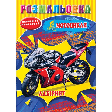 Розмальовка Мотоцикли, наклейки, лабіринт, А5