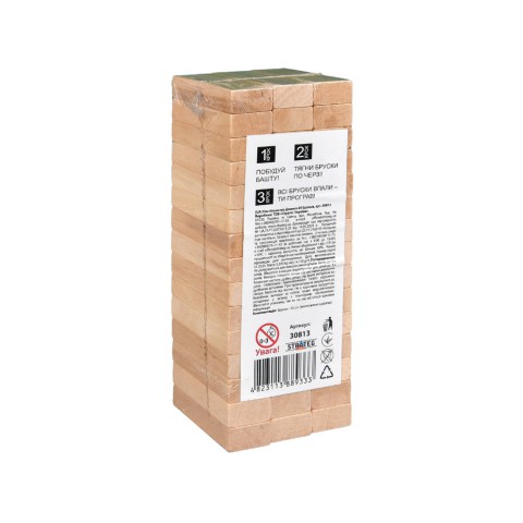 «Джанга 45 брусків» — класична гра на спритність і витримку. Гравці по черзі витягують бруски з вежі та ставлять їх угору, намагаючись не зруйнувати конструкцію.