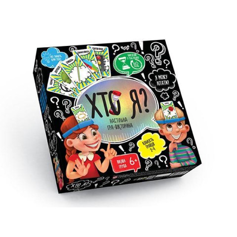 Неймовірно захоплююча гра настільна "Хто я?" укр 7621DT відмінно підійде в якості подарунка як для хлопчика, так і для дівчинки старше шести років. У компанії з цією чудовою вікториною Вашому непосиді не доведеться нудьгувати. Суть гри полягає в тому, що один з гравців, отримуючи картку, ховає її у себе під пов'язкою на голові, а інший намагається відгадати, що саме там зображено, ставлячи питання. Решта гравців, які вже знають правильну відповідь, роблять все можливе, щоб заплутати учасника, і не дозволити йому відгадати. Діткам буде особливо цікаво виконувати поставлені завдання на швидкість, створювати команди, імпровізувати. Ігровий набір виконаний з нетоксичного, безпечного для дитячого здоров'я матеріалу. Така розвага відмінно розвиває фантазію, асоціативне й логічне мислення. Вікторина сприяє формуванню лідерських якостей, цілеспрямованості, самостійності. Оригінальна, стильна упаковка робить цей комплект прекрасним подарунком, для якого не потрібен привід.