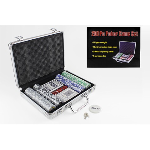 Виглядає набір дуже ефектно, зроблений він за подобою дорослих професійних комплектів. Тут є дві колоди карт, 200 фішок, п'ять кубиків. Все це упаковано в чемоданчик. Поставляється в коробці розміром 30х8х20 сантиметрів.