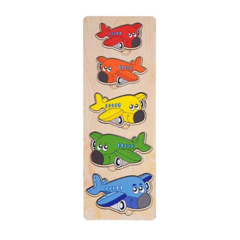 У наборі 5 літачків різного розміру і кольору. Вивчаються поняття "великий" і "маленький" і рахунок 1-5. Вкладиші зручно діставати пальчиками і вкладати в планшет за розміром.