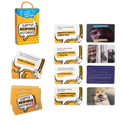 ♦ Комплектація: 196 карт (70 питань, 126 мемів), інструкція.