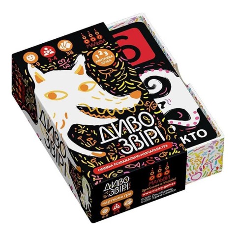 Дивозвірі — це гра з кумедними, трошки злими та веселими дивозвірами та мудрим Мудрозмієм допоможе завсвоїти спочатку додавання, згодом порівняння та додавання двоцифрових чисел і зрештою — множення. І все це в грі, де діти визначатимуть силу дивозвірів. Декілька варіантів ігор дозволить підібрати найкращий варіант для вашої дитини згідно її знань та темпераменту.Гра задумана як сімейна, і навіть коли діти підростуть і табличка множення уже не буде складати труднощів, Дивозвірі все-одно будуть веселим і цікавим варіантом проведення сімейного дозвілля.Коробка зроблена чітко під набір карток. Тому вона не займає багато місця і гру можна взяти з собою на прогулянку чи в подорож, щоб зайняти дитину чимось цікавим та корисним.Комплектація гриВ коробці 36 карток парних карток з числами від 1 до 9 та пара Мудрозміїв.На кожній картці зображена голова або хвіст дивозвіра і відповідне число. Складаючи їх попарно, можна утворити 324 різних дивозвірів з різними смішними іменами та різною силою.Також в коробці є 4 картки з таблицею множення та два листки з інстукціями до ігор: одноіменної Дивозвірі, а також ігор Тримай оборону та Ватага Лютозвірів.Вік гравців: від 6-9 років.Кількість гравців: 2-4 гравців.