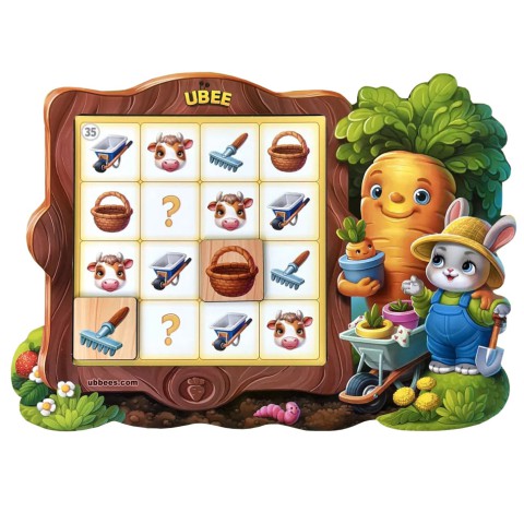 Ця гра - це чудовий спосіб розвивати логіку, увагу та мислення у дітей! У комплекті багато яскравих фішок, зручних для маленьких рученят, із зображенням овочів, фруктів, тварин та робочого інвентаря, що робить процес навчання веселим та захопливим.
