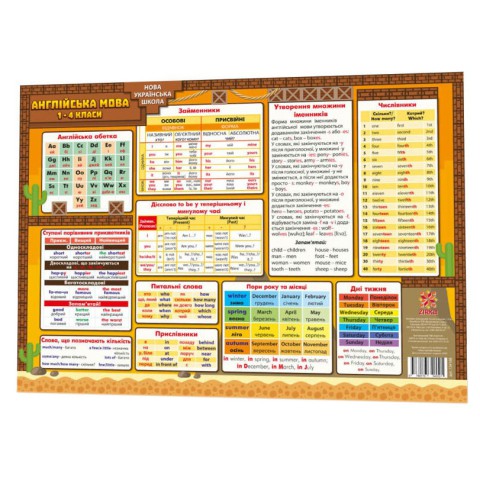Килимок навчальний Англійська мова для 1-4 класів А3 - це правила, поняття та актуальні приклади вживання за весь період навчання в початковій школі з англійської мови, поміщені в окремий планшет-підказку! На килимку знаходиться важлива інформація для учнів, яку потрібно запам'ятати, а ще - це підказка для батьків, які в тій чи іншій мірі допомагати маленьким учням оволодіти шкільною наукою. Її можна покласти на стіл, помістити в зручне місце так, щоб тримати перед очима і легко і швидко знайти необхідну інформацію в разі потреби.