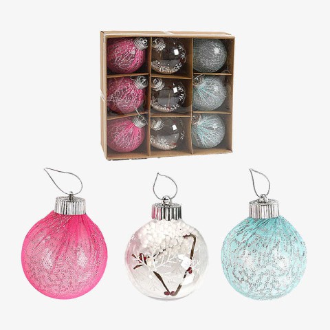Новорічні прикраси 9 шт C67515 – різноманітний набір прикрас для ялинки. Блискучі елементи, пластик легкий для безпечного декору.