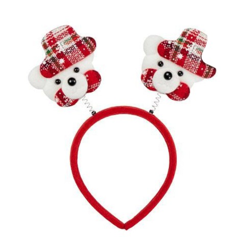 Новорічний обруч із м’якими фігурками на пружинках — ідеальний аксесуар для створення святкового настрою. Обручі прикрашені милими персонажами: Санта-Клаус, ведмедик, сніговик і олень у затишних картатих шапочках. Фігурки весело погойдуються під час руху, викликаючи усмішки у дітей і дорослих. Легкі та зручні, не тиснуть на голову, підходять як для ранків, так і для фотосесій.
