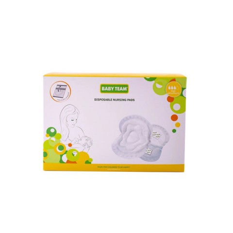 BABY TEAM Грудне вигодовування - це неповторний момент для мами і малюка, завдяки якому між ними створюється особливий зв'язок. Іноді грудне молоко підтікає під час годувань або в перервах між ними, що може створити деякі незручності для молодої мами. М'які і зручні одноразові вкладки створені спеціально для годуючих мам, щоб вони відчували себе впевнено і комфортно в перервах між годуванням малюка під час лактації. Легко і надійно фіксуються в бюстгальтері двома клейкими смужками, забезпечуючи свободу рухів. Вкладки мають спеціально оброблені краї і форму, ідеально прилягають і майже непомітні під одягом. М'який внутрішній шар з віскозного волокна приємний на дотик і дозволяє шкірі дихати. Завдяки абсорбуючому шару, що перетворює рідину на гель, захищають одяг від намокання та запобігають подразненню шкіри. Мають високу здатність поглинання (до 80 мл). Кожна вкладка індивідуально упакована для зручності і гігієнічності. Одноразові абсорбуючі вкладки BABY TEAM для бюстгальтера виготовлені з високоякісних і безпечних матеріалів.