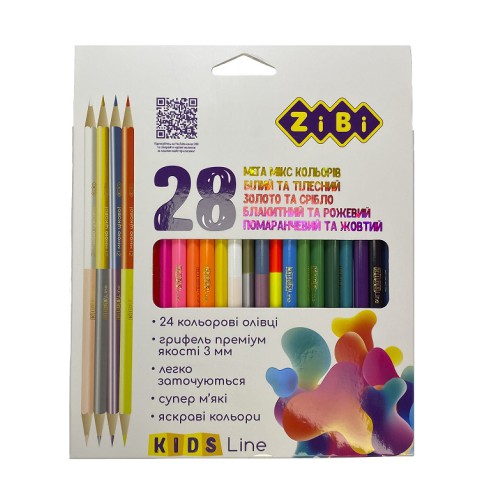 Олівці кольорові, 28 кольорів (12 стандарт, 4 двосторонні), трикутний корпус