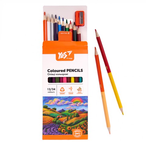 Олівці кольорові Yes Orange Line, 12/24 кольори, з точилкою