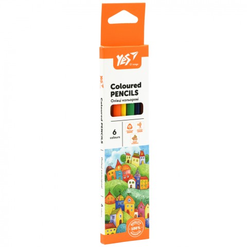 Олівці кольорові Yes Orange Line, 6 кольорів дозволяють створювати малюнки завдяки тригранному корпусу. Включають 6 олівців, грифель 3 мм та інструкцію. Ідеально для дитячої творчості. Створюйте яскраві шедеври! Купуйте на Demsky.com.ua.