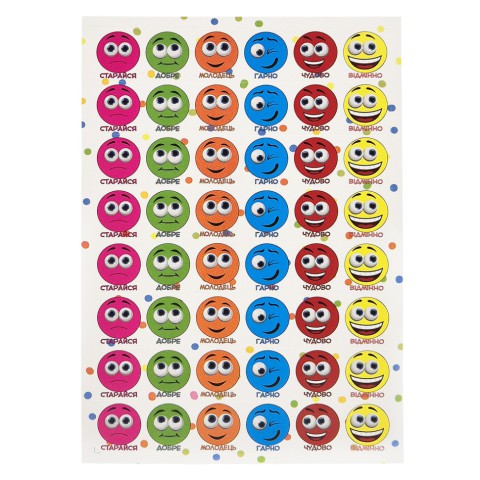 Оцінююча наклейка Смайли KT23082502, 1 лист, 48 наклейок