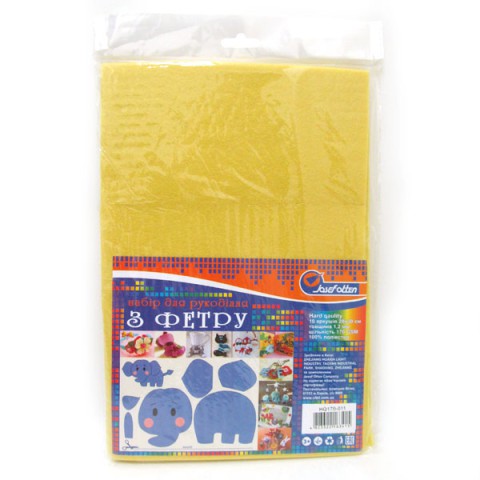 Фетр HARD, 170 г/м², 1.2 мм, Жовтий, А4, 10 шт. в упаковці – Фетр HARD Жовтий (170 г/м², 1.2 мм, А4, 10 шт.) – набір фетру для творчості для дітей від 6 років. Містить 10 жовтих аркушів формату А4, товщина 1.2 мм. Ідеально для аплікацій, іграшок, декору. Сприяє розвитку творчості та дрібної моторики. Замовляйте на Demsky.com.ua для творчого дозвілля!