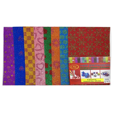 Набір фоамірану блискучого на клейкій основі Візерунки, А4, 8 аркушів, 2 мм, 8 кольорів