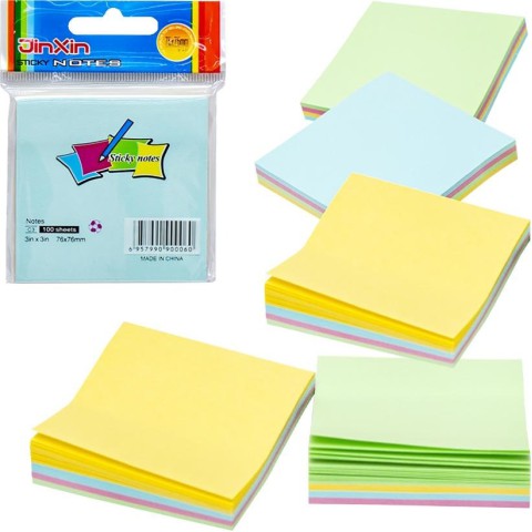 Для нотаток, 76*76мм, Клеєний куб 100 листів, кольорові.