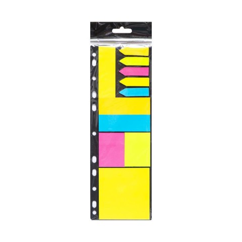 Набір стиків для нотаток на планшетці з отворами для кріплення в органайзер. У наборі 11 видів стиків різних форм та кольорів. Розмір планшетки 9х26 см