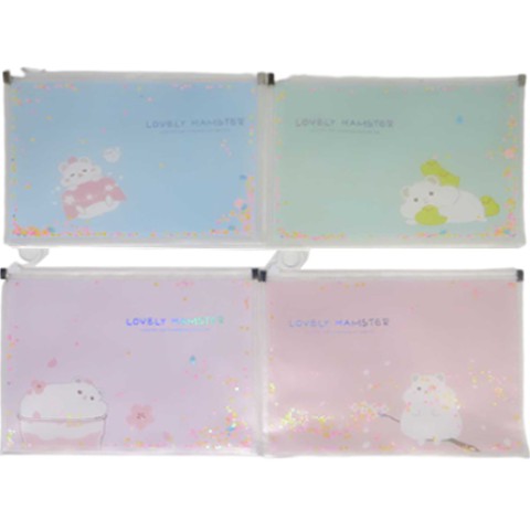 Папка для зошитів на змійці, А5+, Сипучі блискітки-Хом’ячок, 24x18.5 см