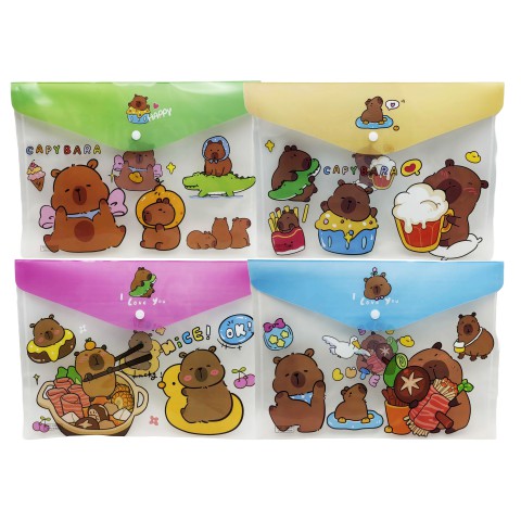 Папка-кнопка А4+, 18 мкм, Капібара, 23.5x33 см, 4 шт. в упаковці (В асортименті)