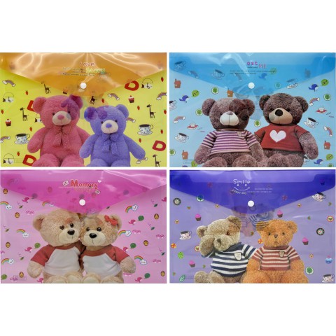 Папка-кнопка А4+, 18 мкм, Ведмедики, 23.5x33 см, 4 шт. в упаковці (В асортименті)