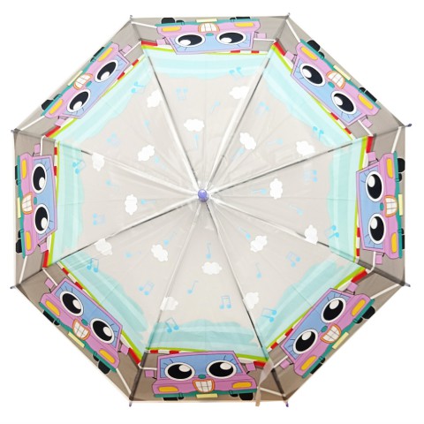 Парасолька – тростина, довжина рукояті 60 см. Кількість спиць 8 шт, довжина однієї спиці 45 см. Діаметр у розкритому вигляді 83 см. Ручка пластикова, гачок. Тонкий, прозорий полімерний матеріал. У комплекті свисток