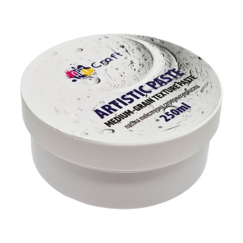 Текстурна паста - використовується для створення текстури та рельєфних елементів у художньому розписі.Може наноситися на будь-яку тверду основу.Вибираючи поверхні, такі як полотно, картон, дерево, штукатурка перед нанесенням пасти, необхідно попередньо загрунтувати.Після висихання поверхня робиться водонепроникною, її можна фарбувати різними видами фарб.