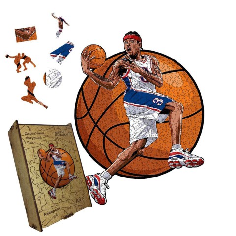 Пазл дерев'яний 'Айверсон': відтворіть енергію та неперевершену гру одного з найбільш емоційних та талановитих гравців у історії баскетболу.