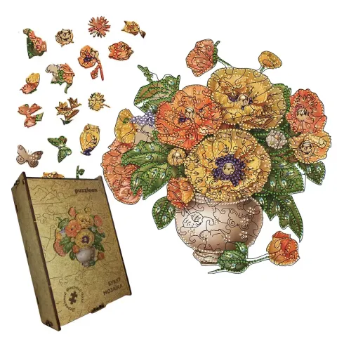 Пазл дерев'яний Букет Мозаїка, А5, 35 елементів, Картонна коробка