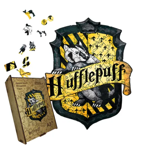 Пазл дерев'яний 'Гафелпаф': відкрийте двері до таємничого та чарівного світу Хогвартсу, збираючи цей вражаючий образ символу справедливості та терпимості, і відчуйте себе частиною шляхетного дому Гафелпаф