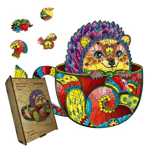 Пазл дерев'яний 'Їжачок в чашечці': відчуйте тепло та затишок, збираючи цю милу картину з маленьким їжачком, який підніме вам настрій!