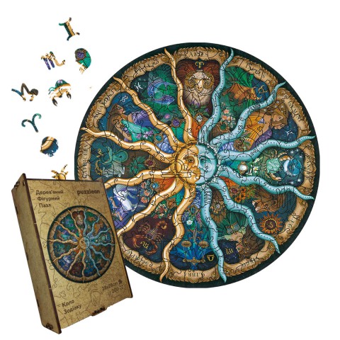 Пазл дерев'яний Коло Зодіаку, А4, Дерев'яна коробка 100 елементів