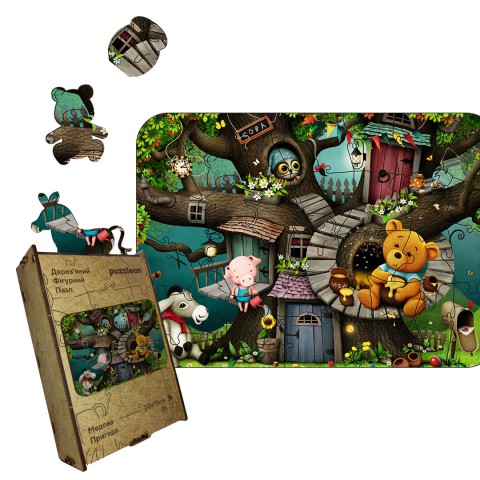 Пазл дерев'яний 'Медова Пригода': розгадайте загадки і пригоди цього солодкого світу, збираючи кожен шматочок цієї медової картини!