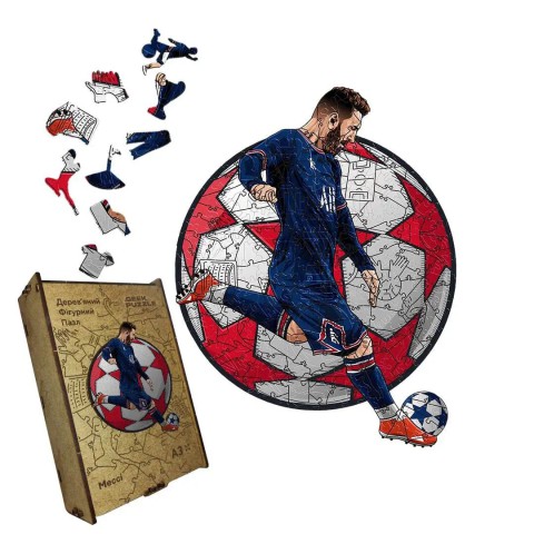 Пазл дерев'яний 'Мессі': складіть унікальний образ великого футбольного майстра Ліонеля Мессі, відтворюючи його неперевершену техніку та талант за допомогою дерев'яних частинок!