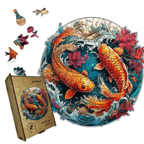 Фігурний дерев’яний пазл "Морська Феєрія" - це справжня перлина серед пазлів, що зображує дві золоті рибки в чарівному підводному світі. Кожен шматочок виконаний з якісного дерева і має яскраві, насичені кольори, які підкреслюють красу морського життя.
