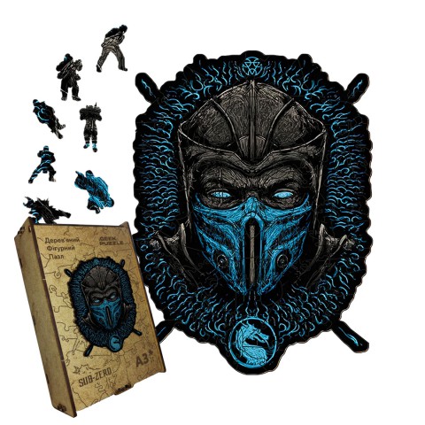 Пазл дерев'яний 'Мортал Комбат: Саб-Зіро': зберіть цього легендарного ніндзя , розкриваючи його таємничу маску і неймовірні бойові вміння у світі Мортал Комбат.