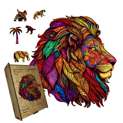 Пазл дерев'яний Мозаїка Лева, А4, Дерев'яна коробка 100 елементів