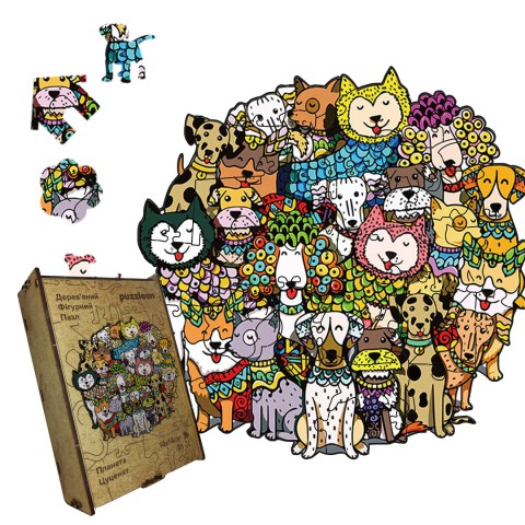 Пазл дерев'яний 'Планета Цуценят': розгадайте цей захоплюючий образ, де кожен шматок простору населений миленькими цуценятами