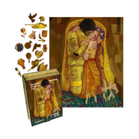 Пазл дерев'яний 'Поцілунок': відтворіть миттєвість любові в складний час, збираючи цю романтичну картину